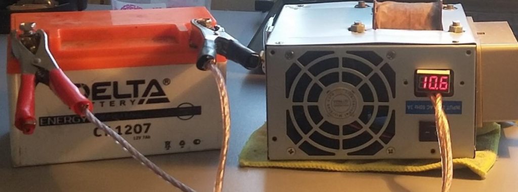 Вот и все, устройство готово, и остается изучить вопрос, как оно работает? А работает оно следующим образом. Когда в сети есть ток, работает зарядное устройство и заряжает аккумуляторы – естественно, этот процесс нужно контролировать и вовремя выключать зарядное устройство из сети.