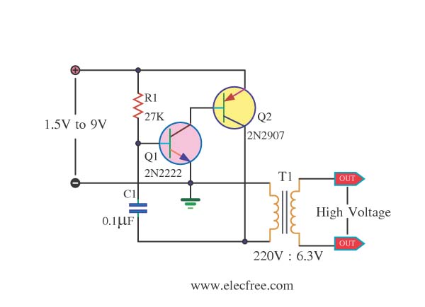 На следующем рисунке показана простая инверторная схема для новичков, которую можно легко собрать дома и использовать с любым небольшим свинцово-кислотным аккумулятором, например, с аккумулятором 12 В 7 А·ч