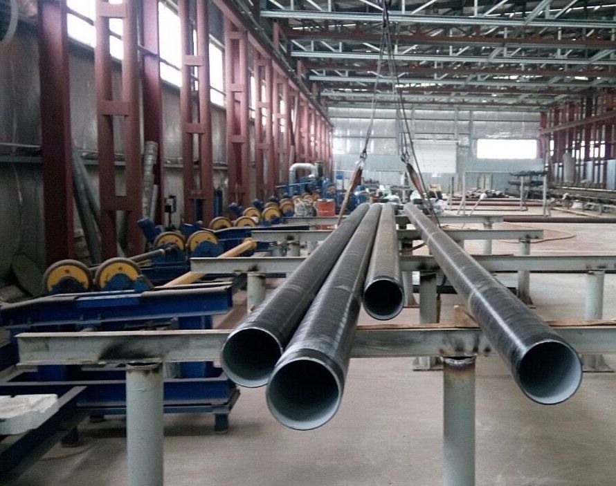 - В первую очередь необходимо подготовить поверхность. Труба предварительно нагревается и очищается путём дробемётной очистки. Это специальный дробемётный аппарат, через который они должны пройти. Дробомётная обработка нужна для удаления ржавчины и окисли. После окончания работы получается шероховатая поверхность.