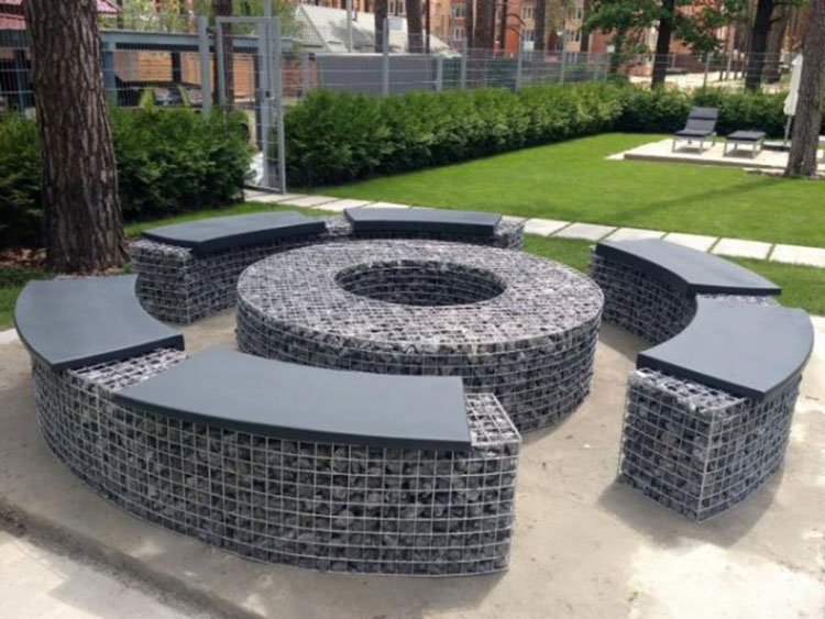 Теперь стоит перейти к декоративному использованию габионов. Отметить нужно сразу, что если вам потребуются габионы конкретно заданных форм, с нишами, которые вообще не предусмотрены в простых образцах, вы всегда можете обратиться к изготовителю и заказать по чертежам необходимую личную конструкцию. В самом известном варианте блоки габионов используют для строительства разных заборов и ограждений: они довольно прочные, легко устанавливаются, и очень красивые. Вообще из габионов можно легко построить все, что вам только придет в голову из МАФ. Часто из них делают мангалы и барбекю в деревянной беседке или камины, если заполнить всю конструкцию, лишь прочными камнями. Можно также легко создать уникальные по красоте скамьи и столы, применяя в качестве столешницы плиту из природного камня или довольно толстое стекло. Декорировать клумбы и заборы для очень красивых деревьев, построить альпийские горки и заборы мини-водоемов на даче – вот только малый список из области использования габионов.