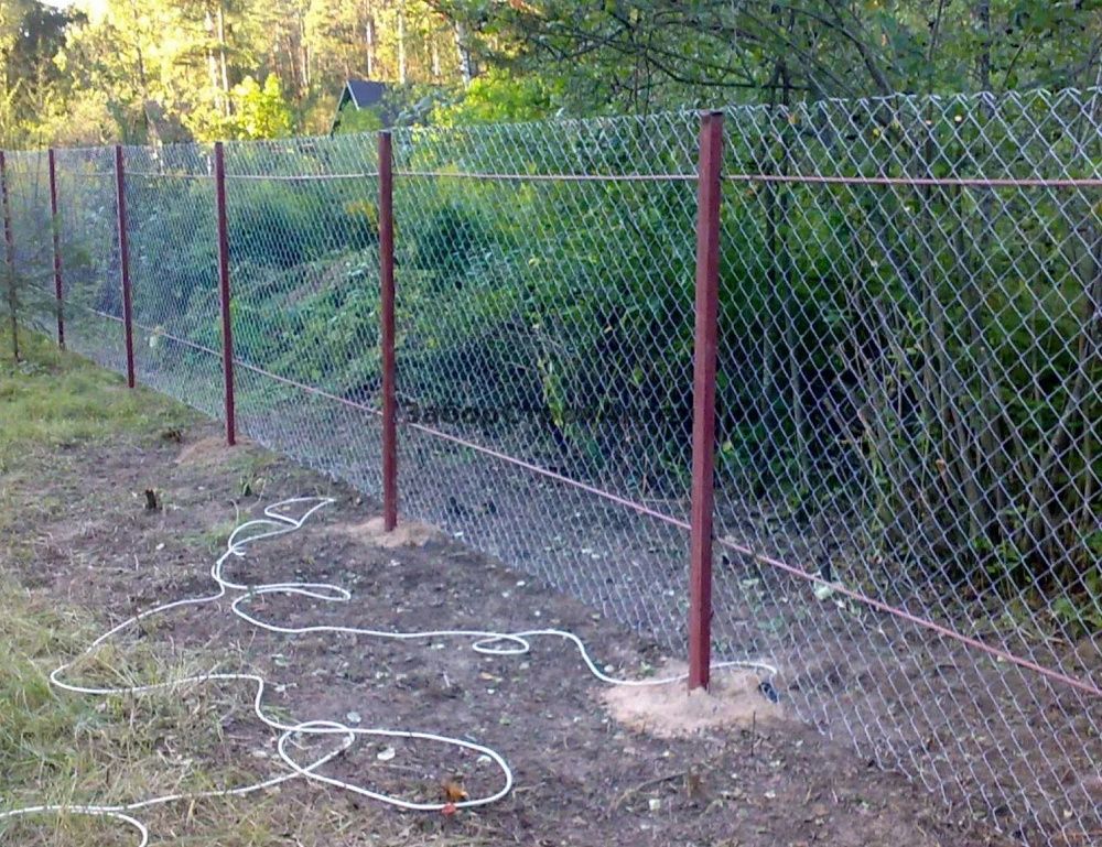 Однако такие опоры прослужат не в пример дольше, а в процессе эксплуатации почти не будут доставлять хлопот. Сетка-рабица — достаточно легкий материал, поэтому не нужно приобретать излишне массивные столбы. Конечно, и тонкие металлические жердочки не подойдут: сетку они, может быть, и выдержат, но надежным такой забор не будет. Оптимальный диаметр опорных металлических труб — 70 мм.