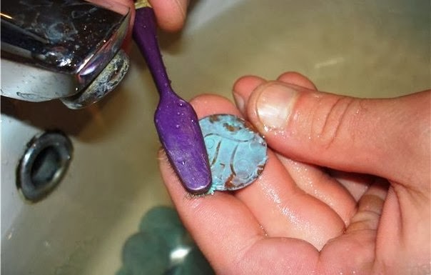 Существуют проверенные технологии, которые без особого труда позволяют произвести чистку загрязненных и испорченных монет в домашних условиях. Однако перед тем, как приступить к восстановлению первоначального вида изделия, следует вымыть монету обыкновенной водой с зубной пастой при помощи щетки. После этого важно установить следующее: