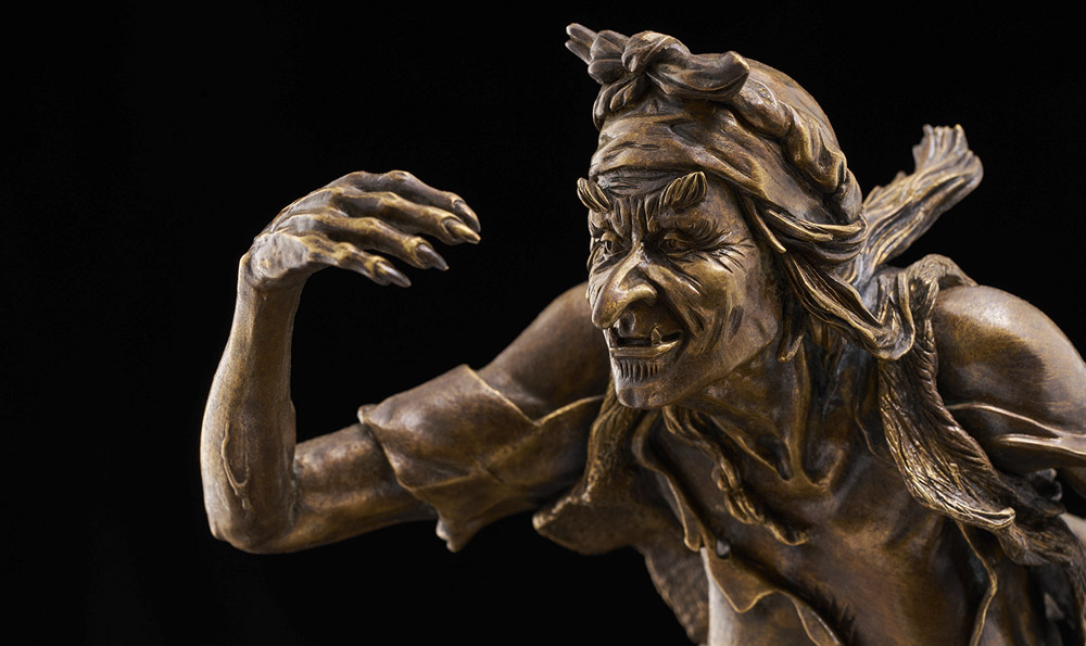 Такой вид изготовления бронзовых изделий называется репуссе. На огне размягчают лист металла, ударом молотка по внутренней стороне придают требуемую выпуклость, постепенно, удар за ударом, возникают очертания и детали шедевра. Мастер должен иметь хороший багаж практики и ловкости.