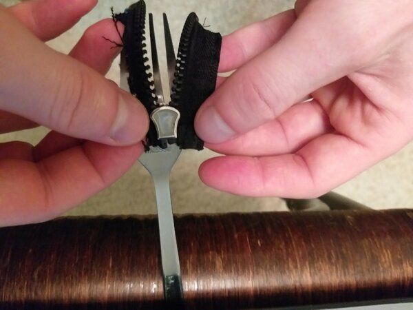 Итак, если молния разошлась, возьмите узкую отвертку и просуньте ее в пазуху бегунка.