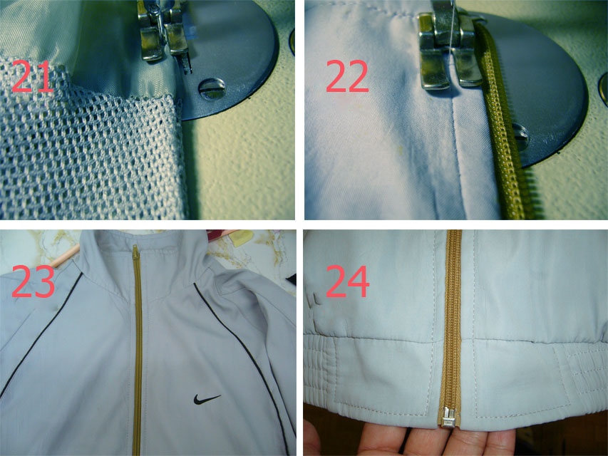 - После этого проверьте работоспособность молнии, несколько раз расстегнув-застегнув куртку. Не забудьте, что застегивать ее до упора нельзя, ведь верхние ограничители еще не установлены.