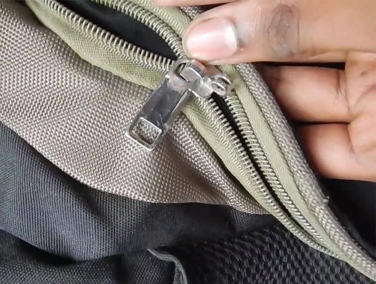 Смысл этой манипуляции — немного расширить приспособление. После того, как отверстие немного расширилось, вставьте в него свободную половину застежки, затем скрепите бегунок плоскогубцами. Замок должен работать почти как новый.