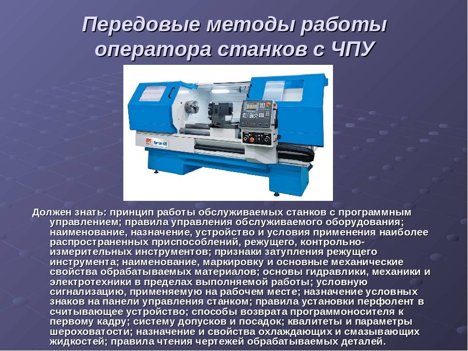 Современные современные токарные станки часто оснащены Компьютерным числовым программным управлением (ЧПУ) , позволяющая оператору программировать и повторять определенные операции.