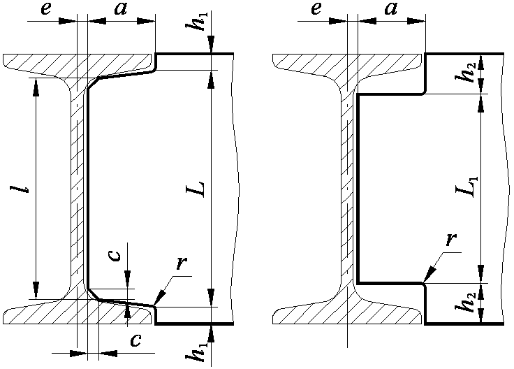 При пересечении двух краевых фланцев образуется угол. В углу полки могут перекрываться, перекрываться или соприкасаться.