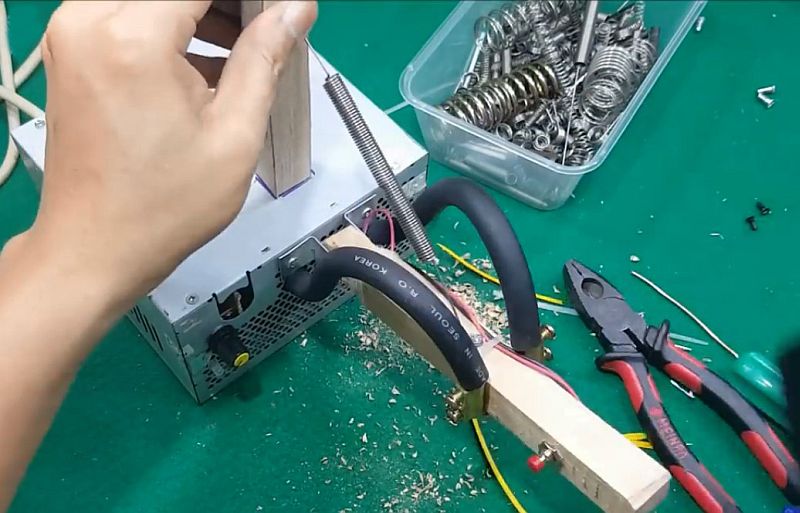 Именно для этих целей следует оснастить самодельный аппарат из микроволновки соответствующими органами управления. Основными из них являются выключатель и рычаг, при помощи которого и обеспечивается требуемое усилие сжатия электродов и соединяемых деталей.