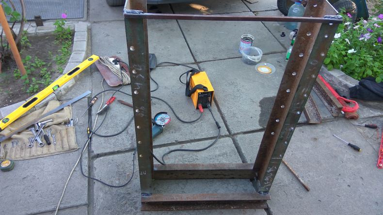 - Сварите боковины и верх кровати вместе, контролируя ровность и прямоугольность стыков … Малейшее отклонение от прямого угла хотя бы в одной или нескольких вершинах приведет к заметному ослаблению запаса прочности пресса.