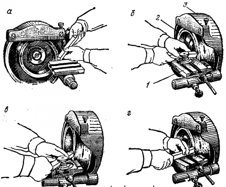Резцы из твердых сплавов обрабатываются посредством зеленого карборунда. Стальные рабочие элементы обтачивают с участием шлифовальных деталей вращения, обладающих умеренной твердостью.