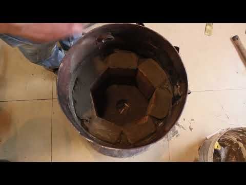С порошком и углем внутри и крышкой сверху поместите тигель в печь и обожгите печь до 1950-2000°F. Если я приоткрою крышку печи и внимательно прислушаюсь, я иногда замечаю клокочущий звук ближе к концу (звук «выдыхания» руды), и прекращение клокочущего шума кажется довольно хорошим признаком того, что плавка готово. Я подозреваю, что это происходит только с карбонатной рудой, но я не провел тщательной серии экспериментов, чтобы точно установить природу пузырения.