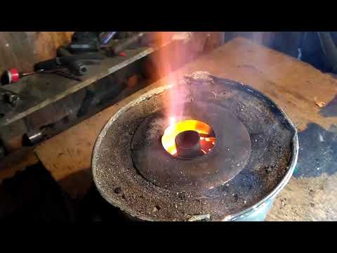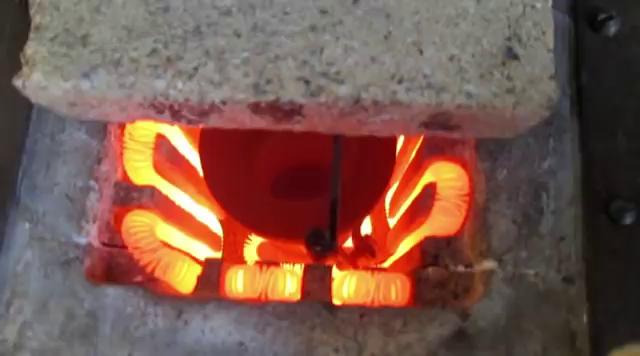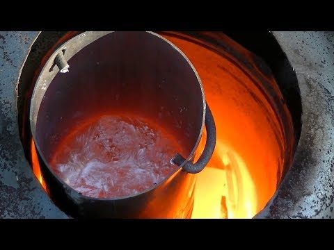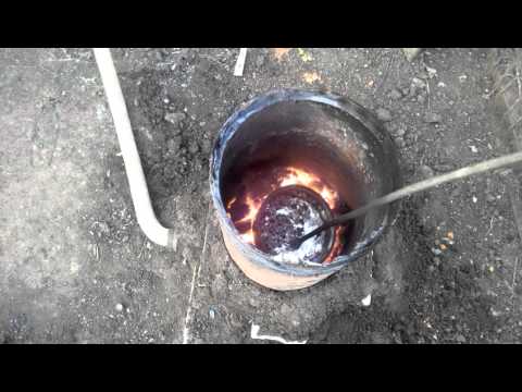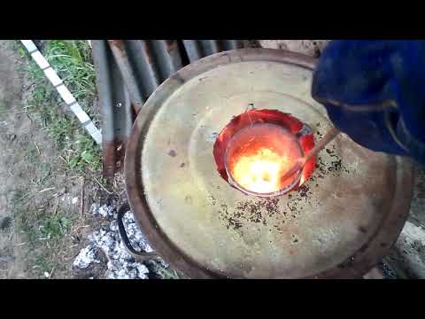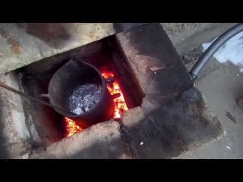 Если нет возможности использования автогена или паяльной лампы, используйте обыкновенный горн. Нужно установить тигель поверх слоя древесного угля. Для повышения температуры горения, можно применить технологию вдувания воздуха в зоны горения. В этих целях можно воспользоваться бытовым пылесосом, работающим на выдувание. Его шланг должен быть оснащен металлическим наконечником, который можно заузить, что даст возможность получить значительно тоньше струю воздуха.
