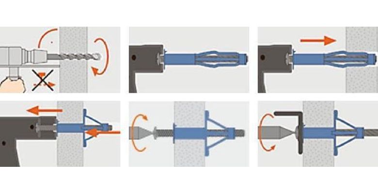 Универсальные дюбели можно закрепить в стене, которая отличается пустотелостью. Материал верхней части такого дюбеля под действием вращающейся силы сердечника скручивается и образует нейлоновую поверхность, которая плотно прилегает к поверхности отверстия, проделанного в стене.