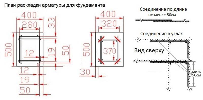 Для укрепления фундаментной части применяют арматуру, которая создает особый каркас, помогающий справляться с постоянными нагрузками.