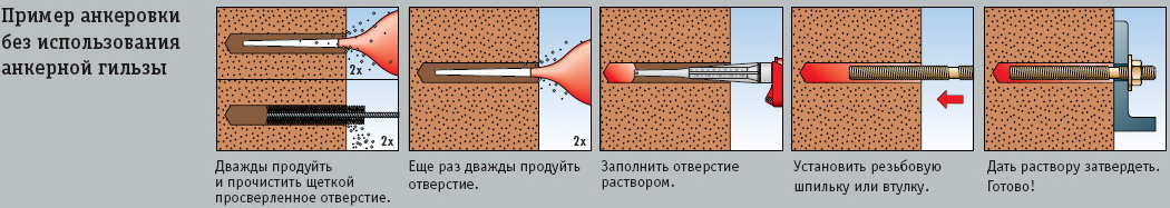 С учетом того, что при монтаже такого болта возникают значительные ударные нагрузки, крепить его в пористых и непрочных материалах не рекомендуется.