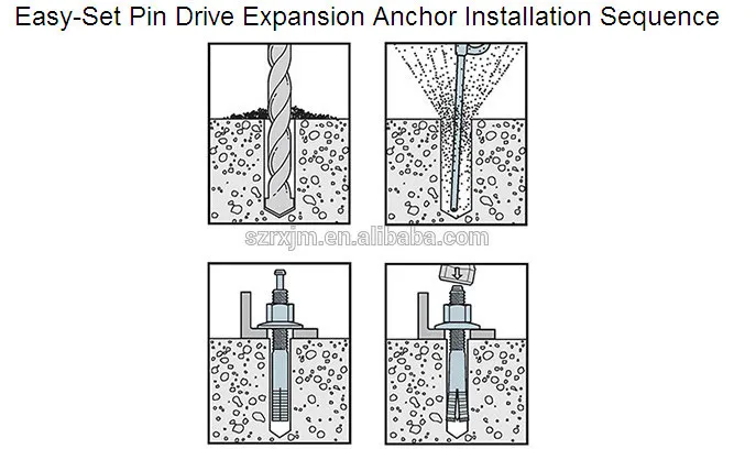 Забивные бетонные анкеры состоят из двух частей: болта с наружной резьбой и втулки с внутренней резьбой с накатанным концом и прорезями. Прорези позволяют нижней части анкера расширяться. Втулка вставляется, а затем прочно устанавливается на место с помощью металлического инструмента. После того, как втулка установлена на место, ее нельзя извлечь из бетона, хотя болт с наружной резьбой можно извлечь из втулки.
