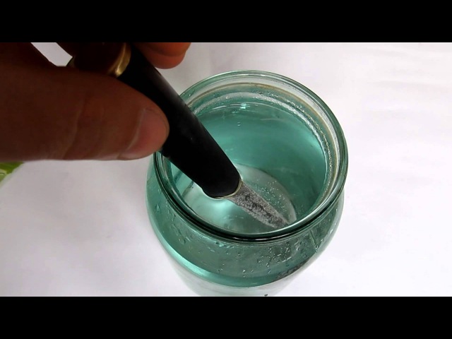 На 0,5 литра воды необходимо примерно 50 г лимонки. На стакан 150 мл я сыпанул 10 грамм. Кислота должна полностью раствориться в воде. Далее также обезжириваем поверхность клинка и опускаем в раствор. Через пару минут на на изделии должны образоваться пузырики.