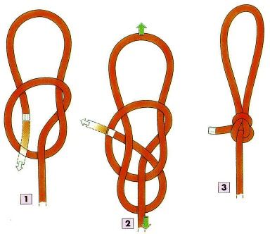 - Боулин : самый универсальный петлевой узел. Не скользит, легко развязывается даже при нагрузке, используется для медвежьих сумок и спасательных веревок.