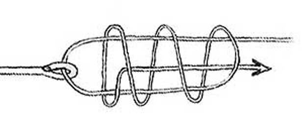 Примечание: При использовании канатная тали может сильно натягивать волокна веревки. Поэтому следует избегать повторного использования одного и того же отрезка веревки для этой цели. Веревки, используемые для изготовления снастей, следует регулярно проверять на наличие поврежденных волокон.