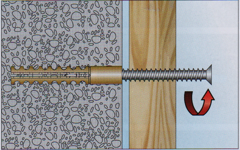 | Использование дюбелей устраняет необходимость использования гвоздей или шурупов. | ||||