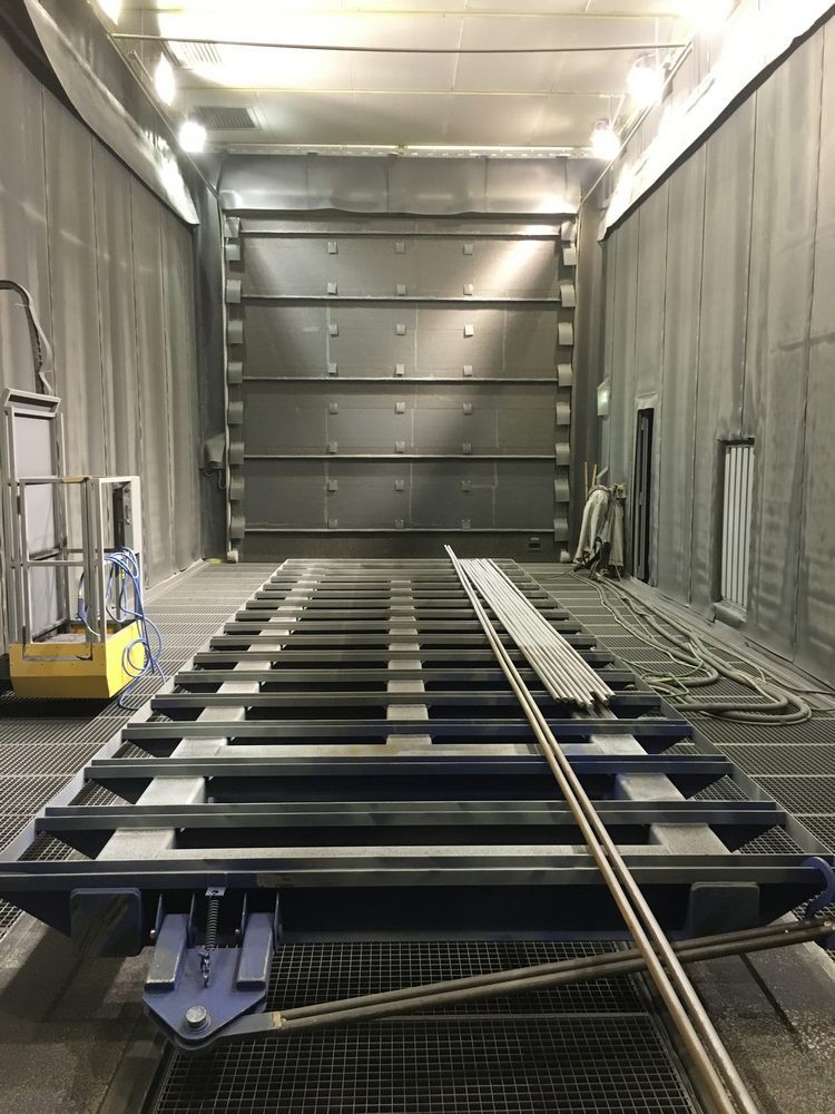 SMS Millcraft использует мощный портальный подъемник для размещения этих компонентов в своей огромной пескоструйной камере. Но если все стороны и крыша этой камеры не были закрыты, сотрудникам постоянно мешала пыль, образующаяся в процессе пескоструйной обработки. Ответ был очевиден: «крышные двери», которые быстро и удобно закрывались над камерой перед каждой процедурой пескоструйной обработки. Но кто делает такую дверь?