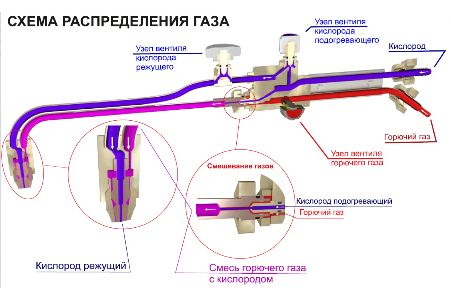 Схема кислородного резака.