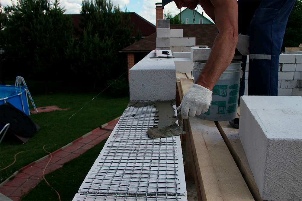 Не все полотно кладки пористых блоков нуждается в укреплении арматурной сетки. Прокладка сетки нужна лишь в зонах с усиленной нагрузкой. К таким областям относят первый этаж помещения. Особое внимание при укреплении уделяют: