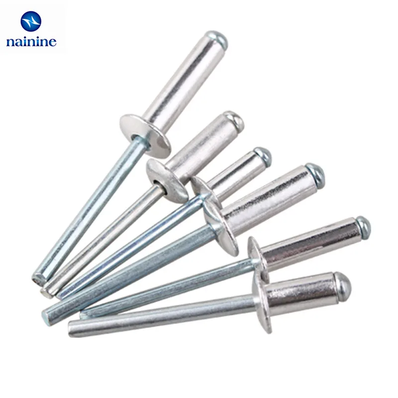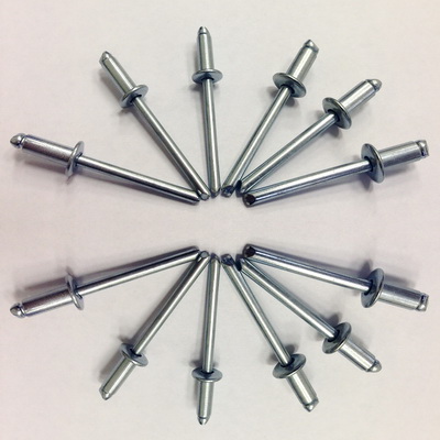 Заклепки состоят из алюминиевой втулки, внутри которой находится стальной сердечник. Именно за счет сдавливания втулки и происходит создание наплыва в месте крепления. Естественно, что чем плотнее структура металла, тем надежнее качество крепежа. В продаже имеются заклепки с втулкой из латуни или сплавов.