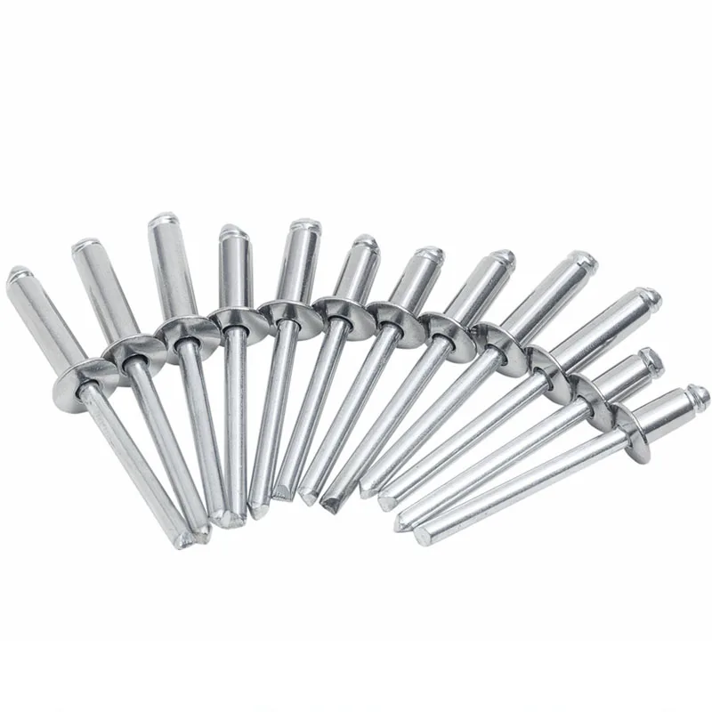 Односторонние заклепки бывают вытяжными, резьбовыми и гаечными. Кроме того, их разделяют на стандартные, рифленые, лепестковые, закрытые и специальные. Для самостоятельного монтажа пригодятся вытяжные и резьбовые заклепки.