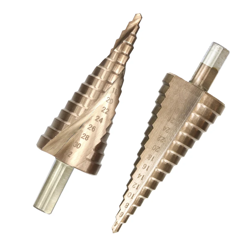 Ступенчатые сверла Спб имею два типа, ступенчатое сверло прямая канавка и ступенчатое сверло спиральная канавка, это обеспечивает: гладкость реза, отсутствие заусенцев в отверстии, высокую производительность работы ступенчатые сверла.