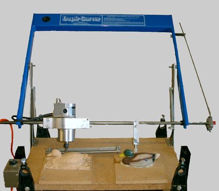 Используя компактный фрезер на каретке с противовесом, процесс рекреации детализируется на вашем деревянном материале. Бит маршрутизатора следует по пути стилуса, что позволяет отслеживать оригинал. Так появляется копия настоящей резьбы по дереву.