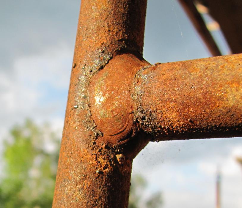 Гальваническая коррозия внутри горизонтального стабилизатора Статуи Свободы. Винт из нержавеющей стали со стопорной шайбой из стали с кадмиевым покрытием.