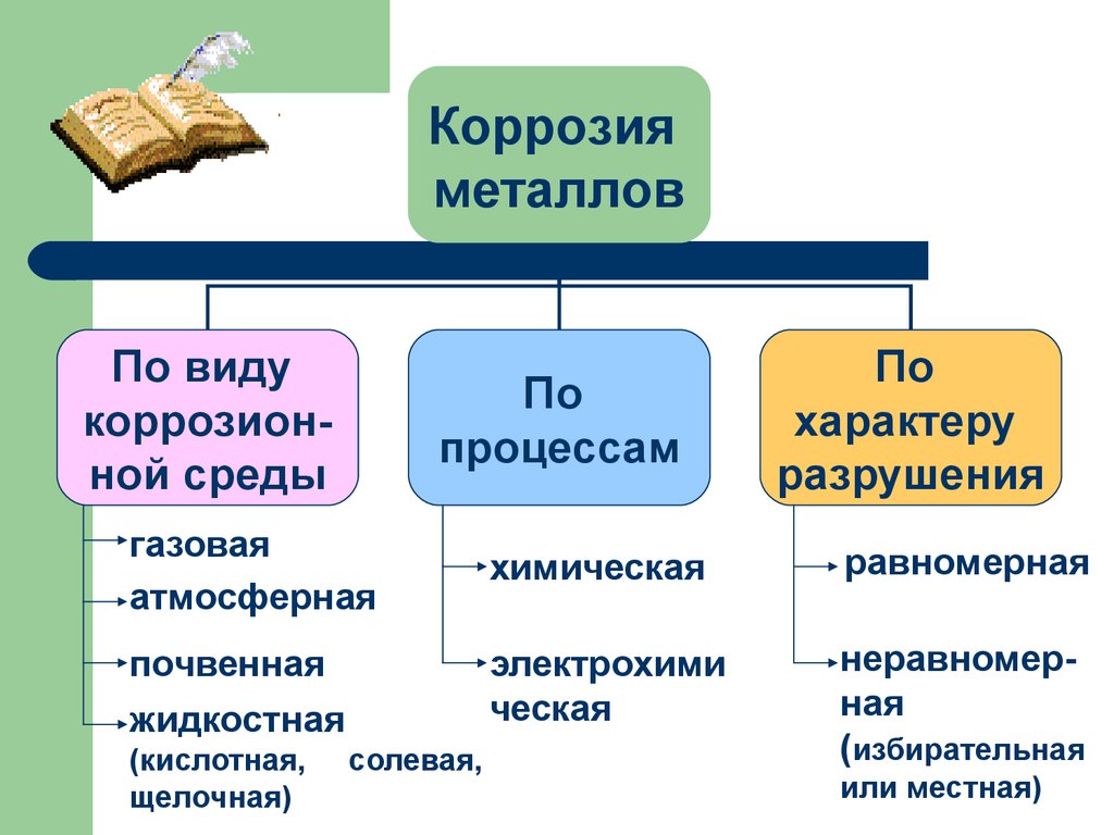 Существует несколько видов коррозии, различающихся способом проникновения в металл и типов воздействия на него:
