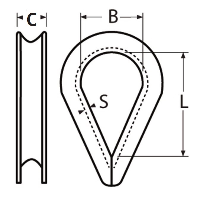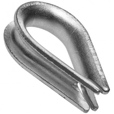 Используется в основном в страховочных канатах из органических и синтетических материалах. Размерный ряд деталей достаточно большой и главным признаком для выбора коуша здесь является диаметр каната. Для канатов диаметром 10,2-12,5 диаметр коуша в самой широкой его части будет 40 мм. Длина по внутренней части 65 мм, наружной 100 мм. Радиус канавки под канат 7 мм. Сталь для изготовления деталей может использоваться как обычная, так и оцинкованная. Выбор зависит от условий эксплуатации. Для изделий, используемых в судовом такелаже, только нержавейка А4, обеспечивающая стойкость при воздействии агрессивной среды. Если попытаться кратко сформулировать ответ на вопрос зачем нужен коуш, то получится одно предложение. Чтобы обеспечить надежное соединение троса с другими такелажными элементами или захватами подъемных механизмов и увеличить срок его эксплуатации.