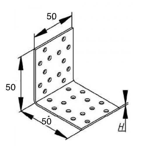 Для усиления используются специальные рёбра жёсткости, в несколько раз повышающие сопротивляемость крепежа к разгибанию. Расположение отверстий подобрано таким образом, чтобы уголок крепёжный усиленный максимально плотно прилегал к поверхности, при этом давление на неё распределялось равномерно, исключая деформацию.