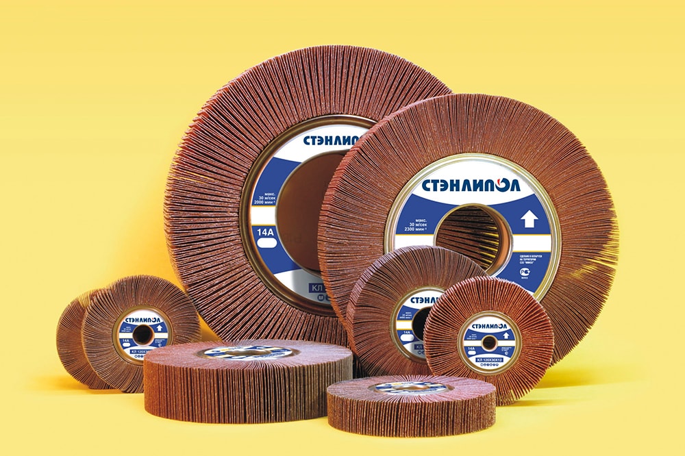 У диска бакелитовая основа. Поверх неё крепятся лепестки из жесткого войлока либо армированной х/б ткани. Лепестки уложены внахлест и под углом, как крыльчатка колеса турбины. Такая конструкция снижает трение и способствует более интенсивному снятию материала. Приятно радует то, что такой диск будет служить вплоть до полного износа лепестков.