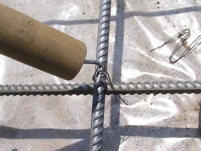 Применение вязального стержня сечением менее 0,8 мм затруднительно, т. к. он лопнет от рывка. Проволоку больше 1,6 мм трудно стянуть в прочный узел.