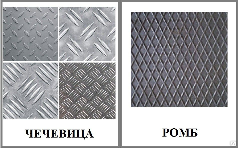 Один из наиболее распространенных видов изделий — стальной рифленый лист ромб В-К-ПУ-4,0-1500-6000 Ст.3сп. Он выполнен с нормальной точностью (В) по толщине основания, которая составляет 4 мм., имеет ширину 1500 мм. и длину 6000 мм., катаную кромку (К) и улучшенную плоскостность (ПУ). Конструкционная углеродистая спокойная сталь (сп) марки Ст.3 обыкновенного качества сваривается без ограничений, не склонна к отпускной хрупкости и флокеночувствительности.