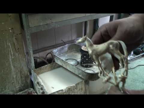 Когда восковая модель обильно покрыта спиртом, ее покрывают смесью гипса и глины. Затем его обжигают в керамической печи при температуре 600 градусов по Цельсию. Глина затвердевает, воск тает, оставляя место в глине, и форма готова.