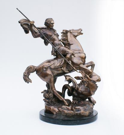 8. Отдельно отлитые детали (здесь голова и руки) были сплавлены с туловищем путем заливки расплавленного металла по стыкам. Поверхность собранной скульптуры очищали, точили и полировали. Поверхность металла была обработана для ее защиты и получения желаемого цвета.