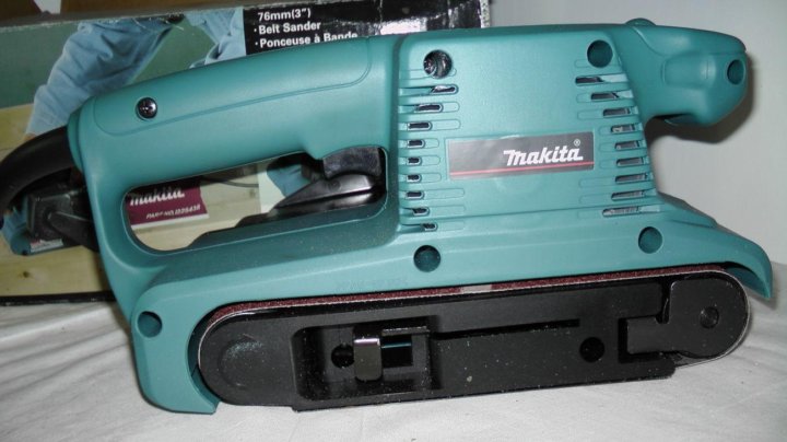 Для предварительной обработки больших поверхностей, грубого шлифования стен, потолков после штукатурки или шпатлевки, снятия старой краски или лака, обдирки или выравнивания поверхностей применяется ленточная шлифмашина Макита 9910. Чаще всего они профессиональные, хотя, некоторые производители выпускают и бытовые модели. Главным элементов, выполняющим шлифовку, является кольцо из склеенной шлифовальной бумаги (шкурки), движущейся на двух концевых роликах. У ленточных шлифмашин высокая производительность, но сравнительно невысокое качество шлифования.