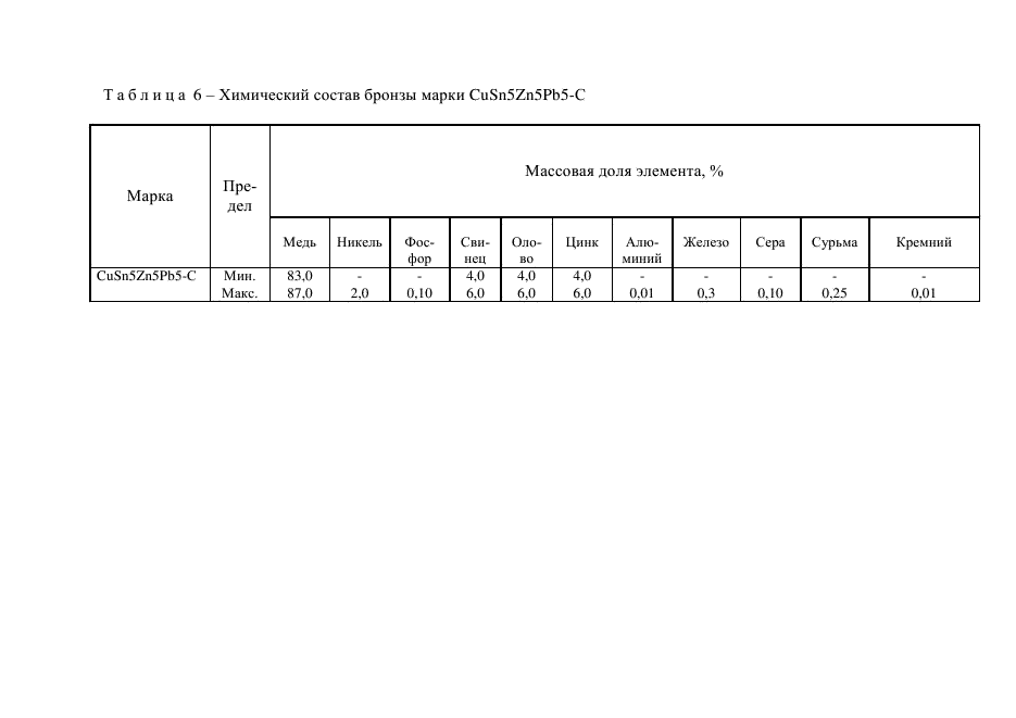 2,5-4% Sn, 6-9,5% Zn, 3-6% Pb, 0,5-2% Ni