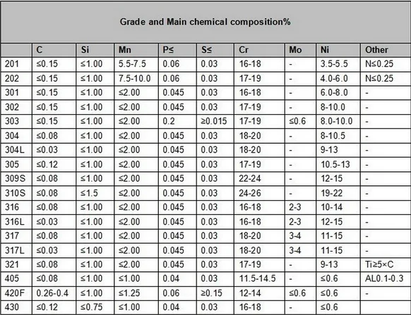 Химический состав нержавеющей стали EN, AISI, ASTM