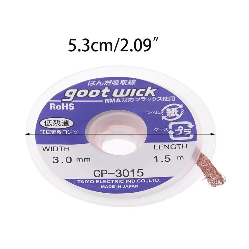 Для их удаления служит медная лента, которая представляет собой проволоку из меди, покрытую специальным флюсом. После ее применения нет необходимости дополнительно очищать контактные площадки.