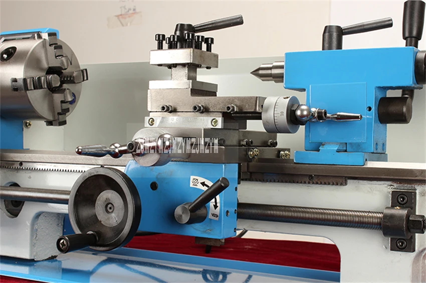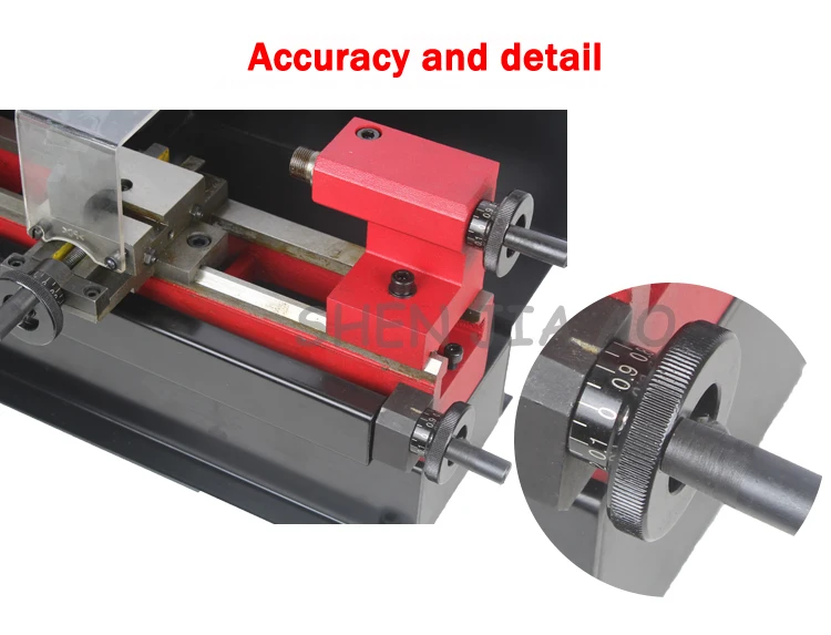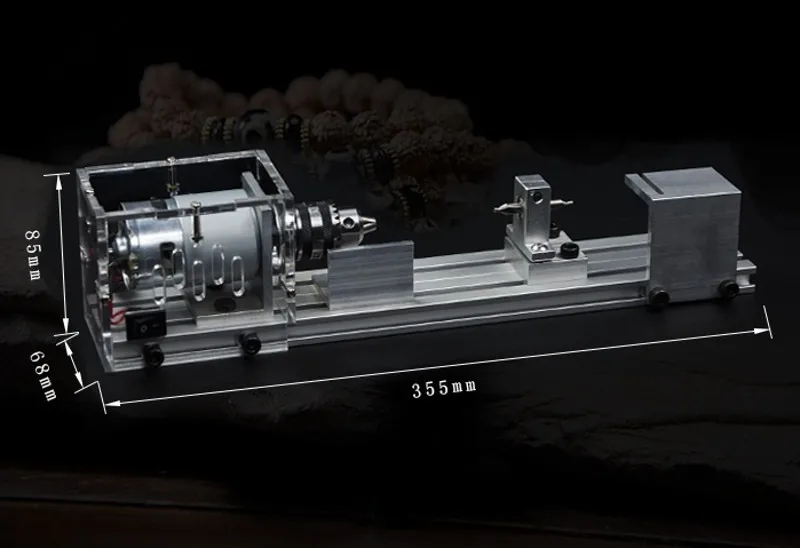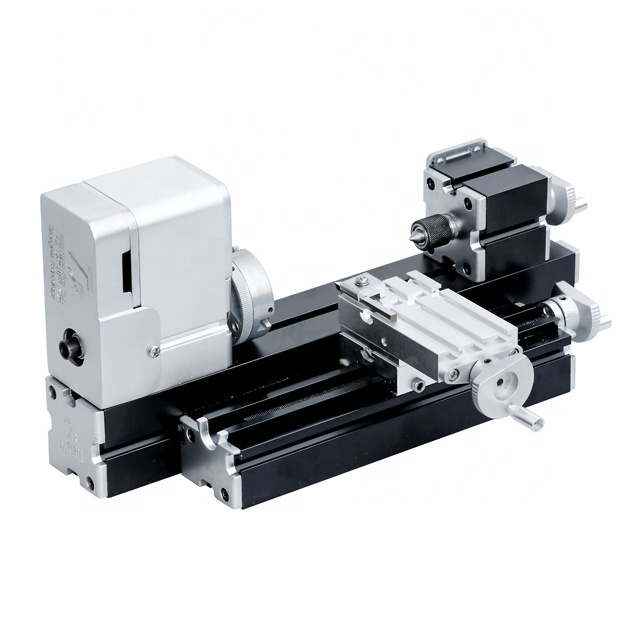 Направление ходового вала и ходового винта можно просто регулировать, используя ручку, расположенную на передней панели. Заднюю бабку можно сместить, чтобы точить конус. Настольный мини станок этой модели можно модернизировать.