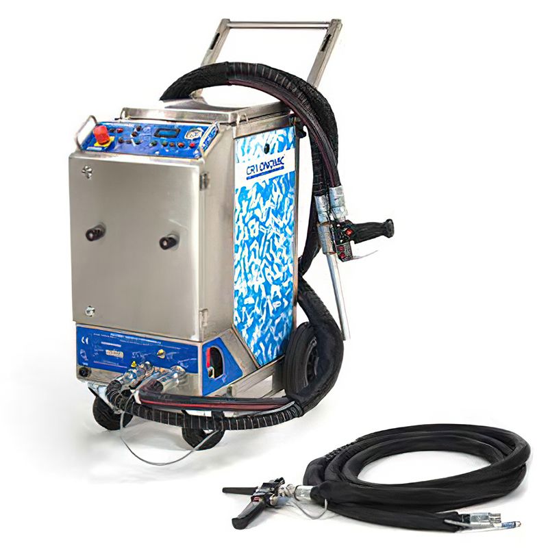 Аппарат для струйной чистки сухим льдом надежно очищает литьевые пресс-формы и производственные линии от остатков силикона, резины, лакокрасочных материалов, а также многих других загрязнений.