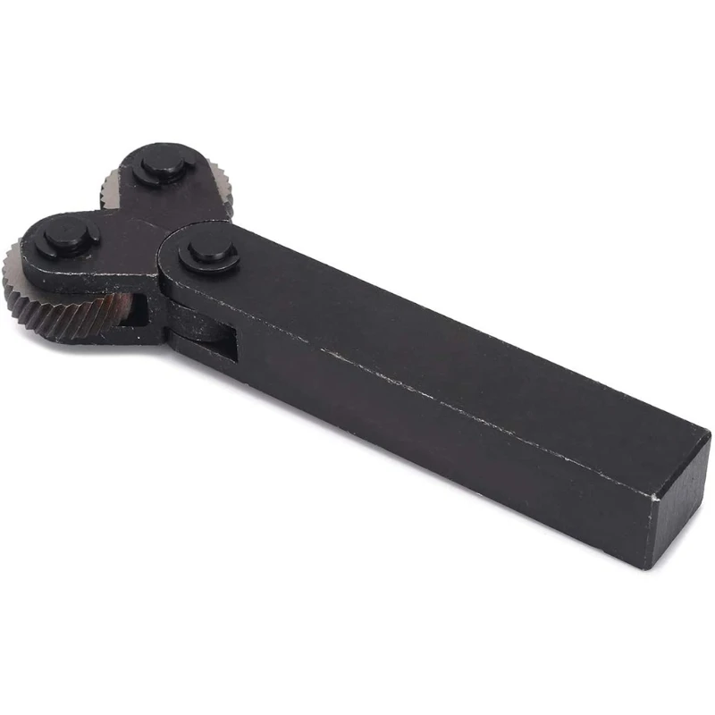 Для ромбовидного узора необходимы два колеса: одно делает линии в одну сторону, а другое — в другую. Простой инструмент для этого удерживает два колеса и удерживается в держателе инструмента на поперечном суппорте. Однако усилие, необходимое для получения действительно хорошей накатки, действительно намного выше, чем поперечные салазки, предназначенные для обеспечения, или головной подшипник, чтобы стоять.