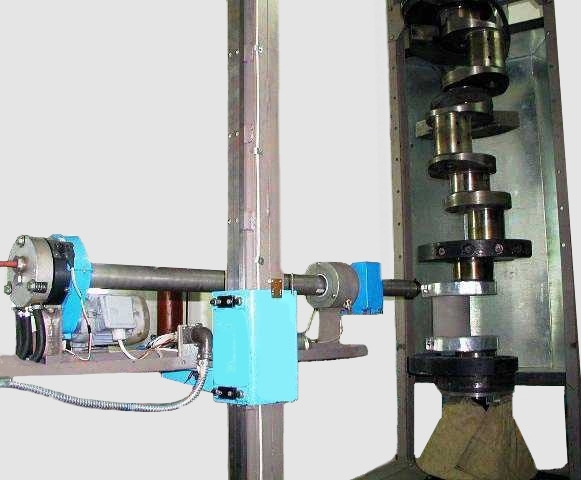 Коленчатый вал устанавливается на станок. С помощью индикаторных головок выполняют диагностику. Проводят анализ биения поверхностей и величину износа: