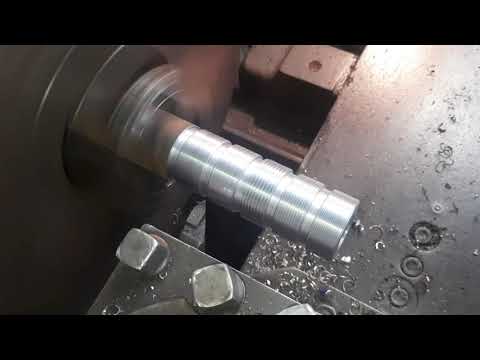 нарезание резьбы на токарном станке 3/8-16 алюминиевых болтов.